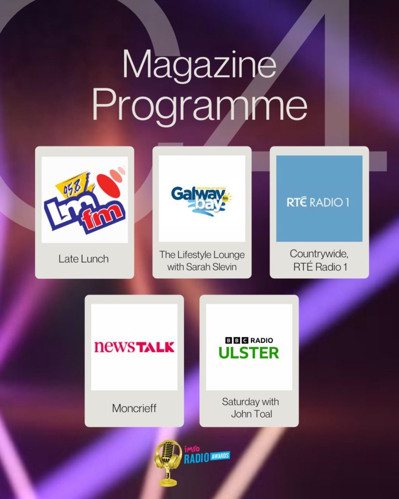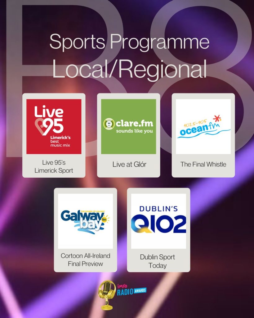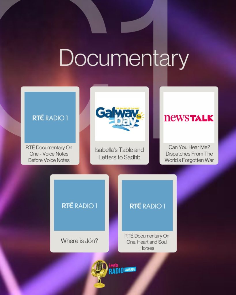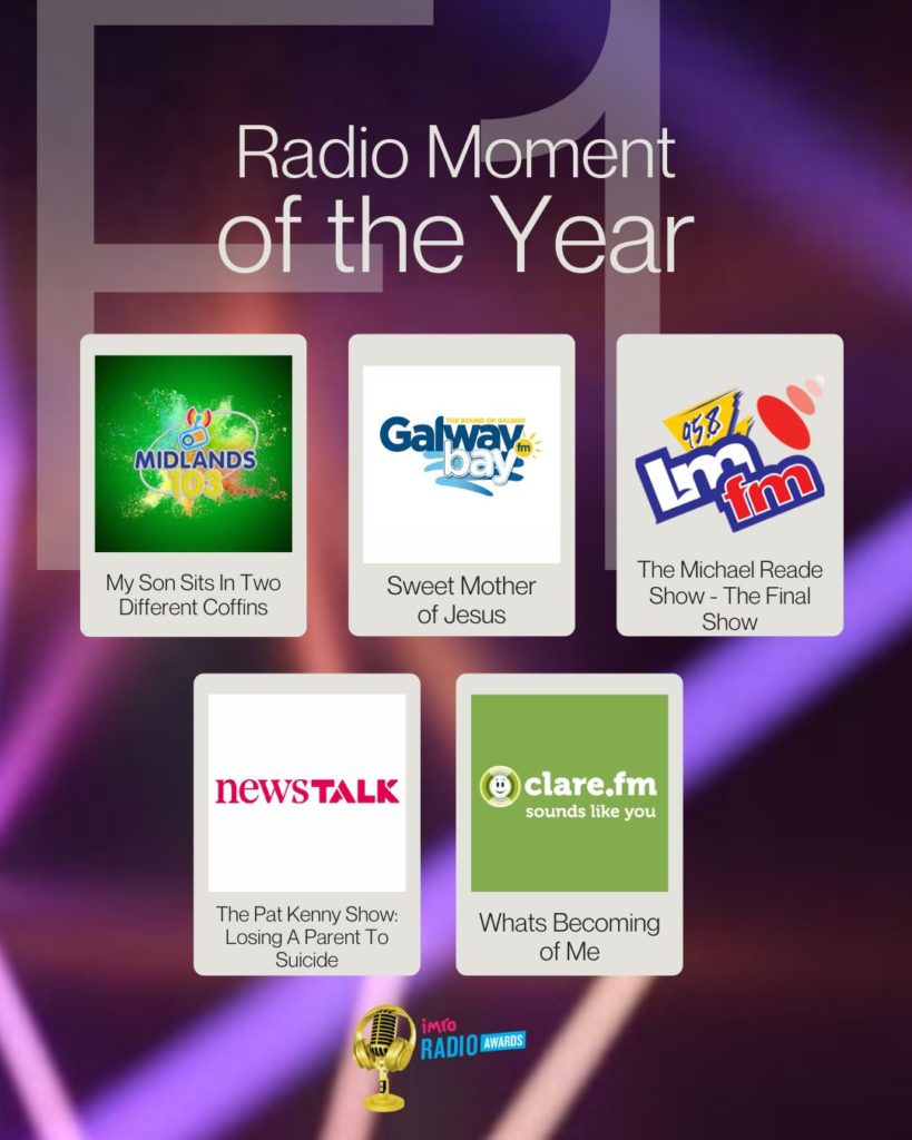 The nominations encompass news, sports, music programming, documentaries, and Radio Moment of the Year. Here is the list of Galway Bay FM nominations: